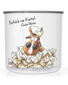 Kugelross Emailletasse - Schick ne Karte, Gute Reise